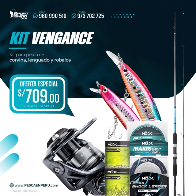 Kit Vengance de spinning para pesca de lenguado, corvina y demás predadores