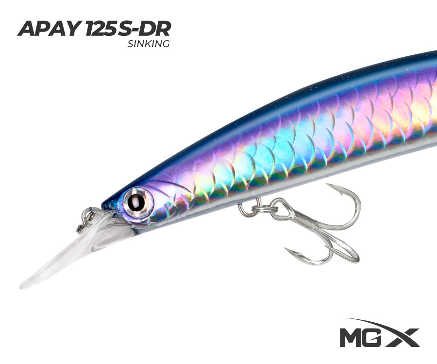 Presentamos el nuevo MGX Apay 125S-DR, una variación del exitoso modelo MGX Apay 125SK. Este señuelo ha sido diseñado específicamente para pescar en pozos de mayor profundidad y en condiciones de mar agitado, comúnmente conocido como “correntada”.