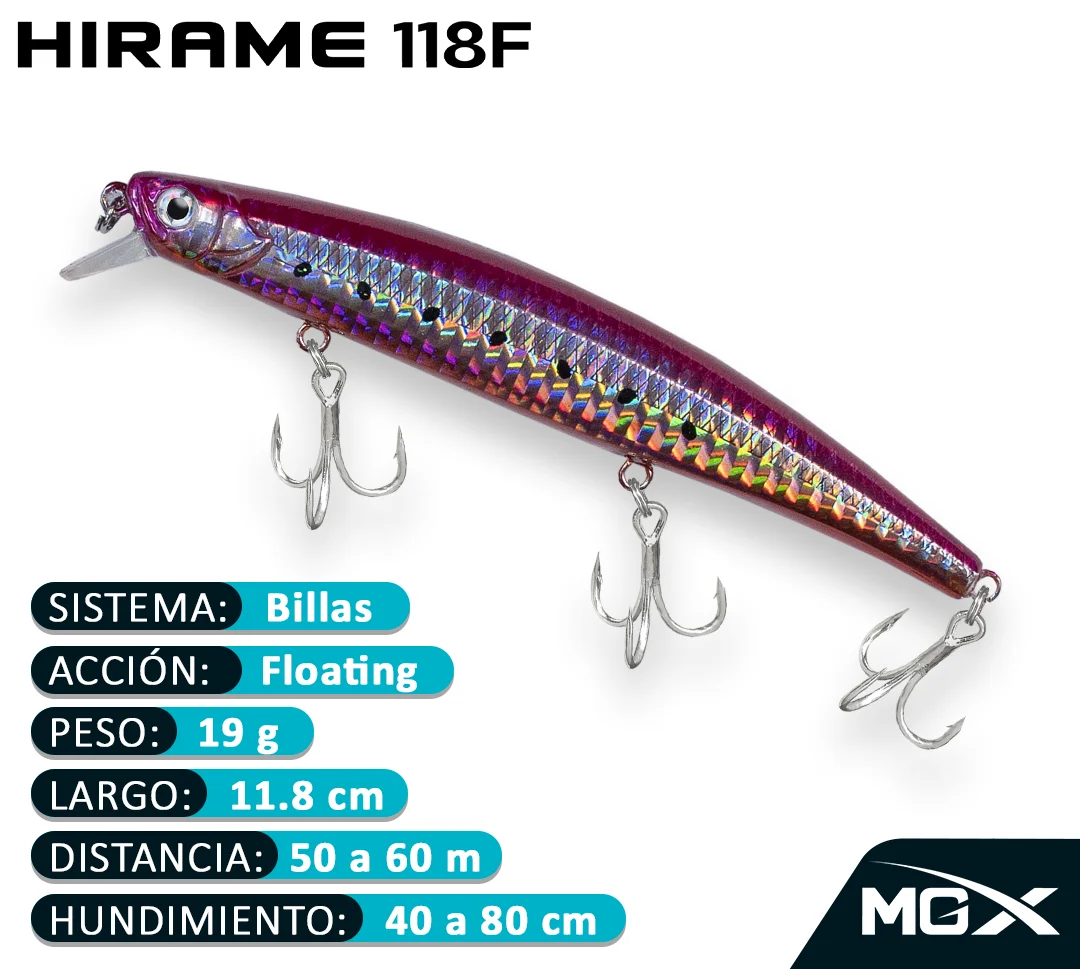 El HIRAME 118F combina precisión, diseño y efectividad, ofreciendo un rendimiento confiable para pescadores que buscan resultados constantes en sus jornadas de pesca.